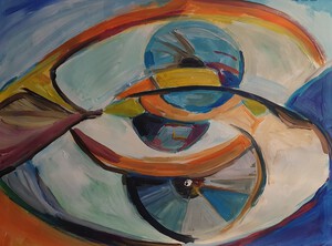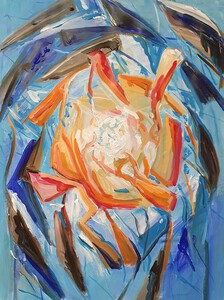 Schilderijen uit een jaar met grote veranderingen. Ik heb bijna wekelijks op mijn schilderochtend een schilderij gemaakt wat direct het gevoel van dat moment weergaf. Van angst naar verdriet, van vertrouwen naar vertwijfeling, de kapotgeslagen droom en de zachte landing aan het einde van de tunnel. De schilderijen verbeelden sterker dan de woorden emotie en gevoel kunnen beschrijven. Dit schilderij heeft als titel 'klauteren onder dreiging'